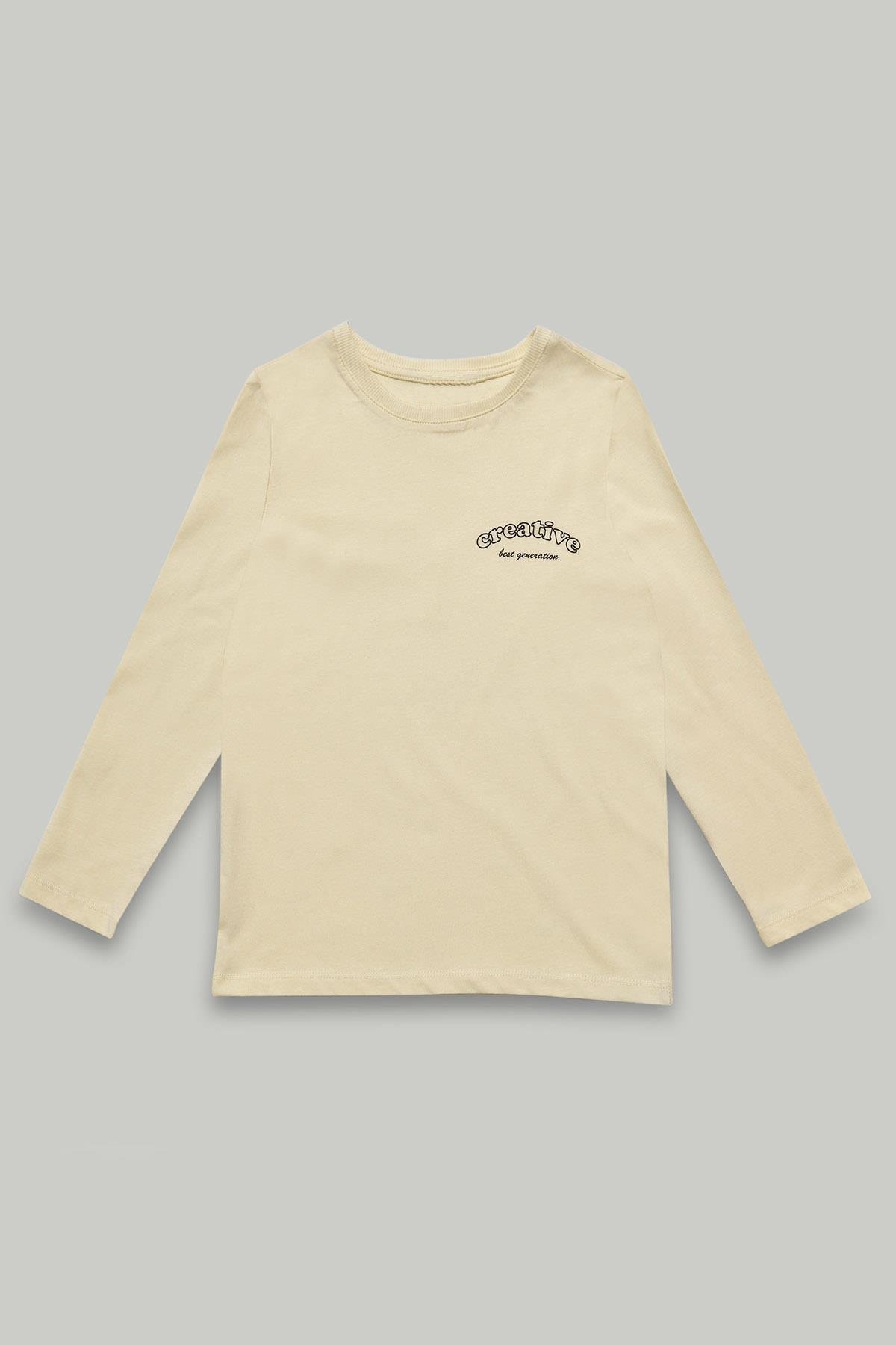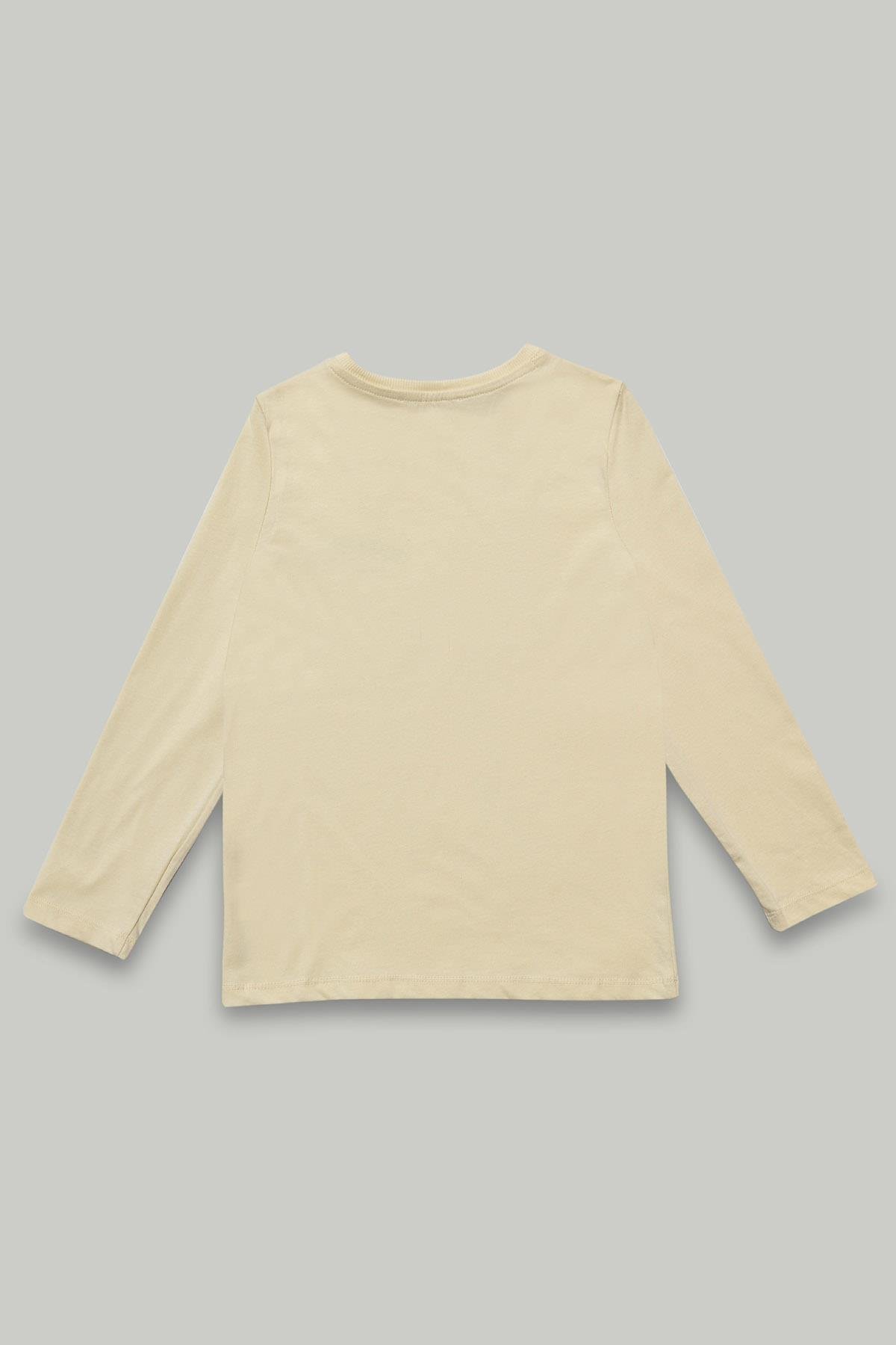 Bisiklet Yaka Uzun Kollu Ekru Erkek Çocuk Tişört (MJ24054-2)