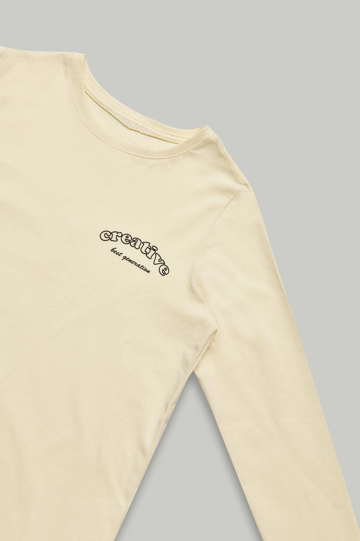Bisiklet Yaka Uzun Kollu Ekru Erkek Çocuk  Tişört