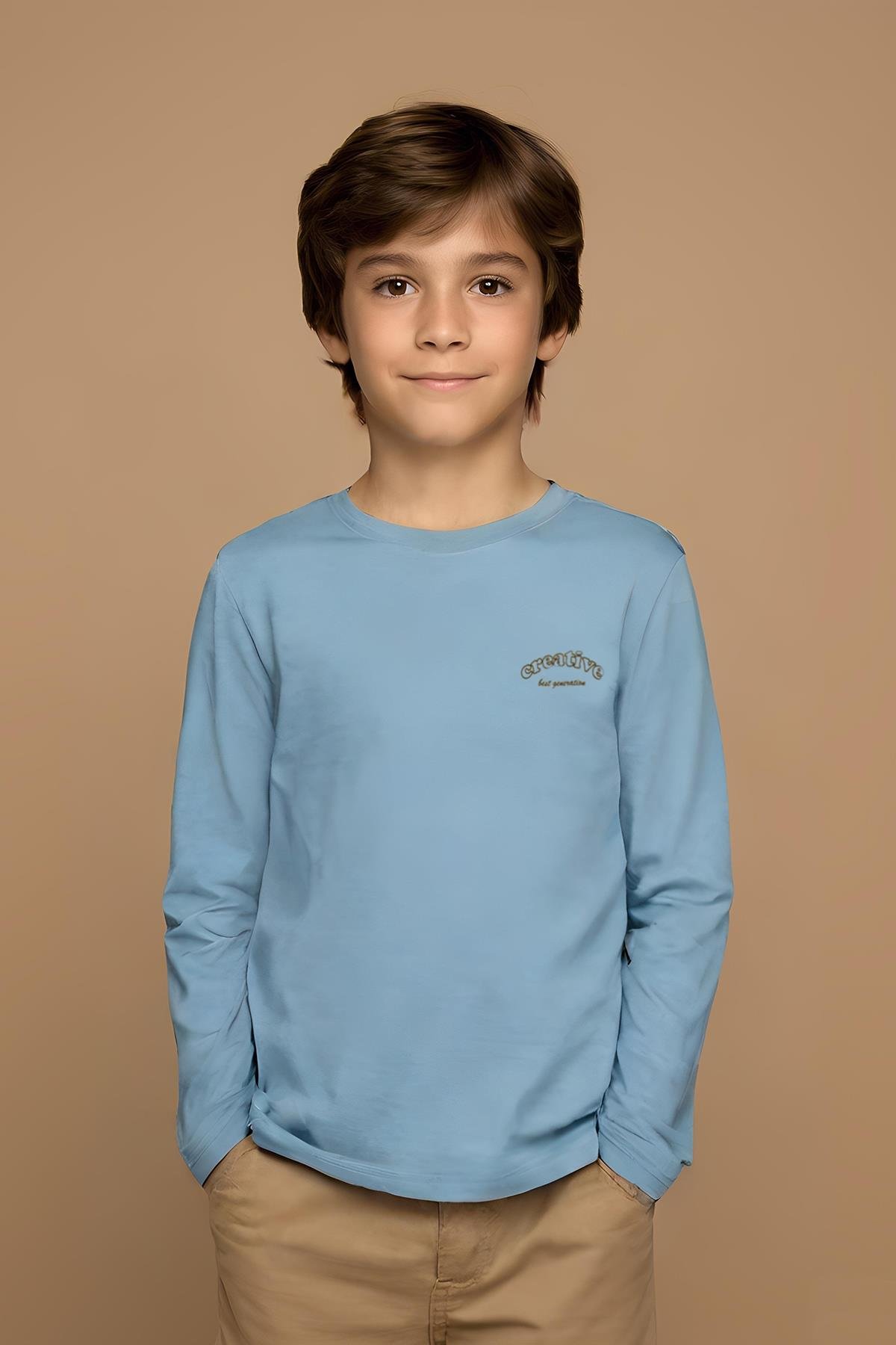 Bisiklet Yaka Uzun Kollu Haki Erkek Çocuk Tişört Bisiklet Yaka Uzun Kollu Taş Erkek Çocuk Tişört Bisiklet Yaka Uzun Kollu Ekru Erkek Çocuk  Tişört Bisiklet Yaka Uzun Kollu Bej Erkek Çocuk Tişört