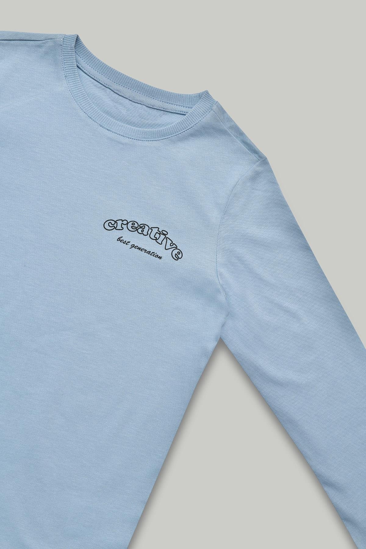 Bisiklet Yaka Uzun Kollu Mavi  Erkek Çocuk Tişört