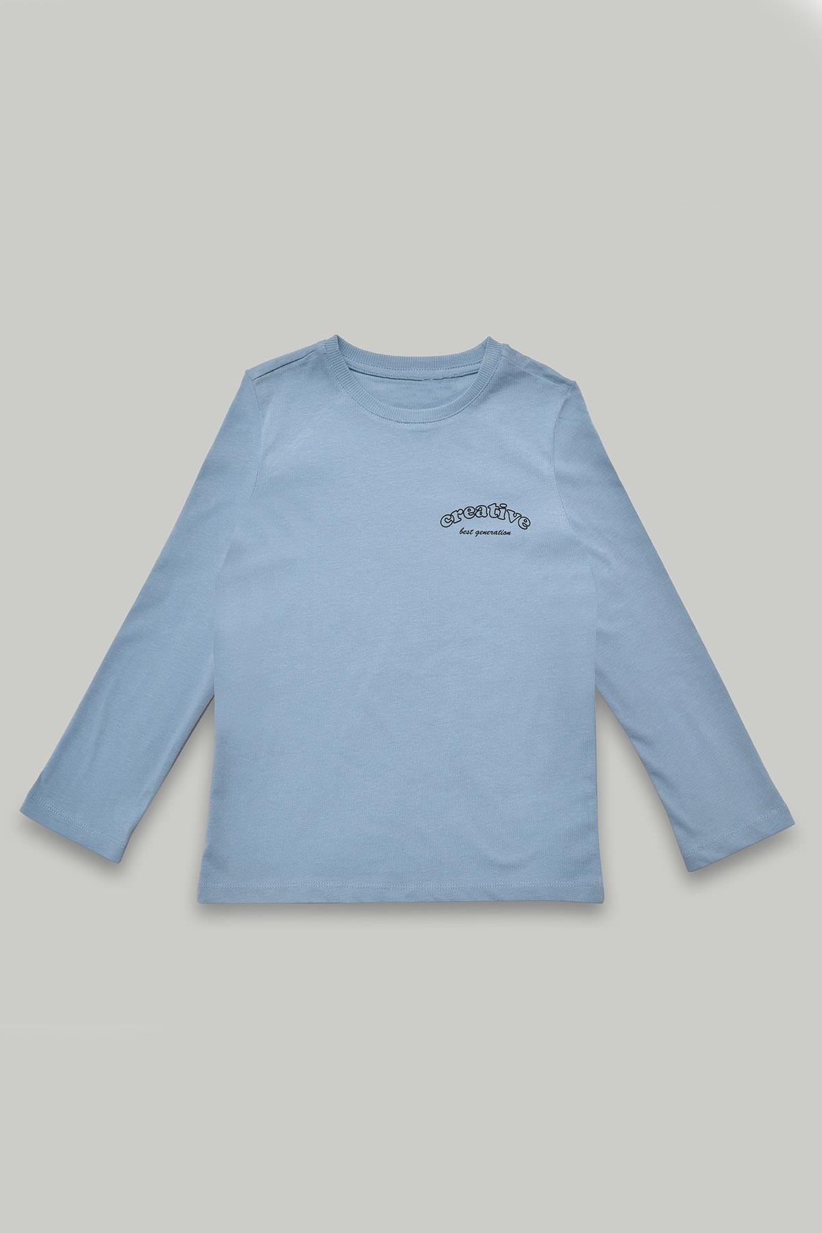 Bisiklet Yaka Uzun Kollu Erkek Çocuk Mavi Tişört