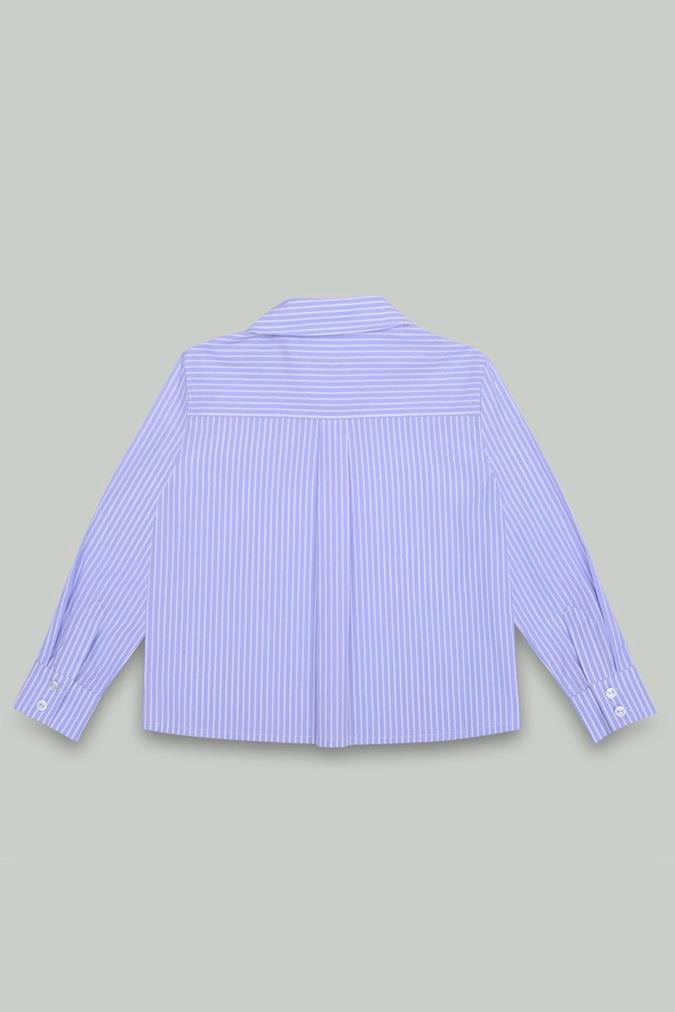 Kız Çocuk Poplin Uzun Kollu Mavi Çizgili Gömlek