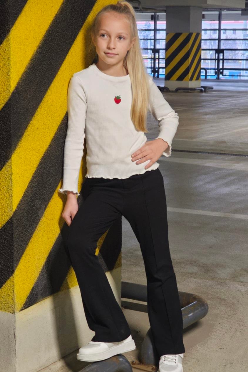 Flare Çelik Örme İspanyol Paça Kız Çocuk Siyah Pantolon (MJ24056-2)