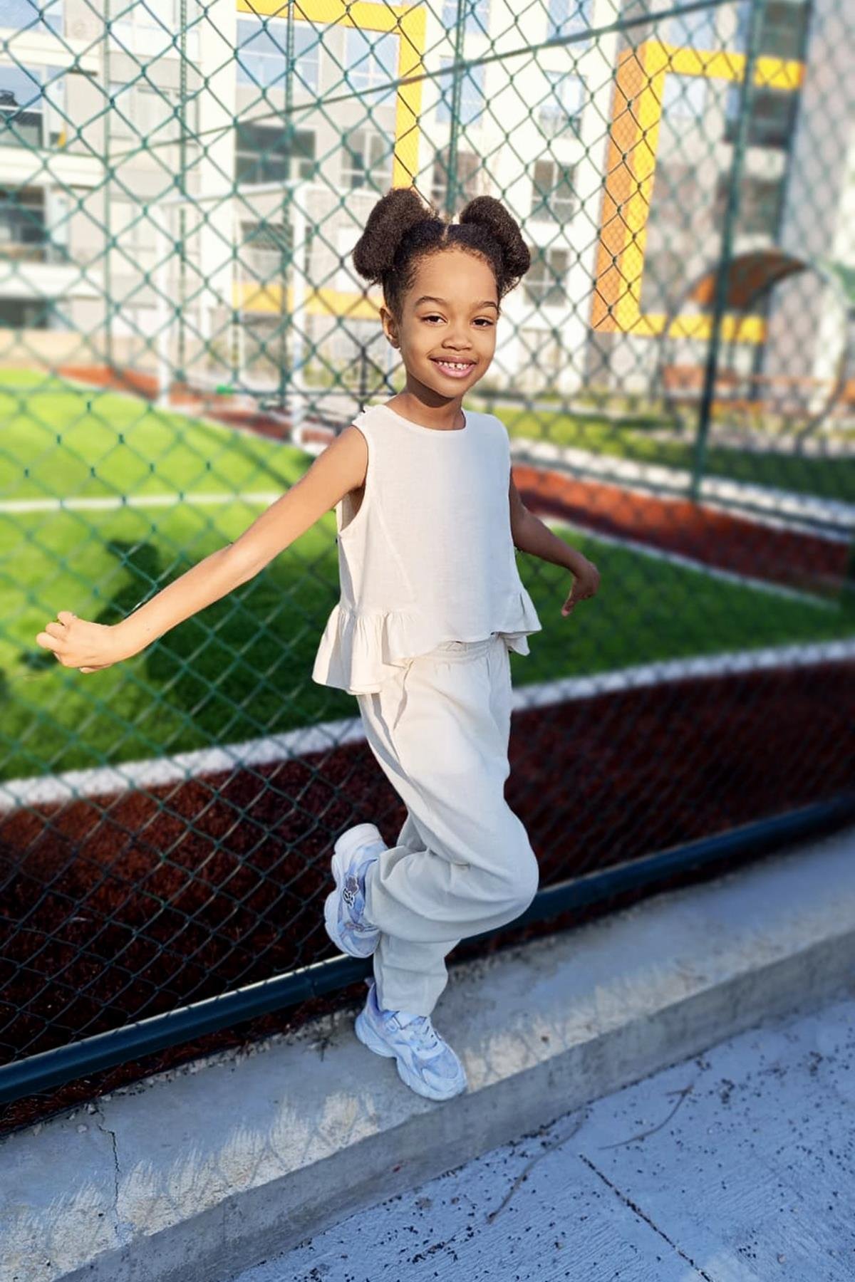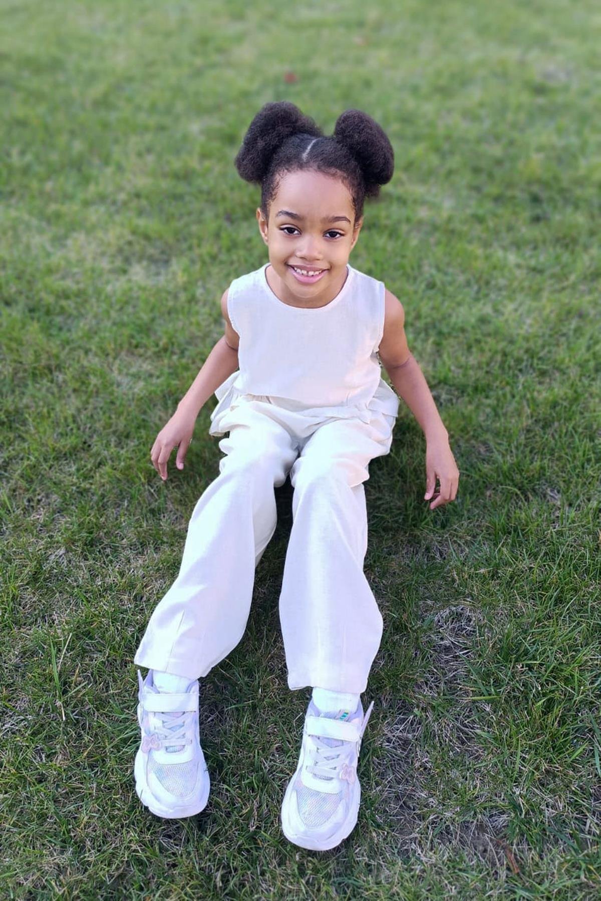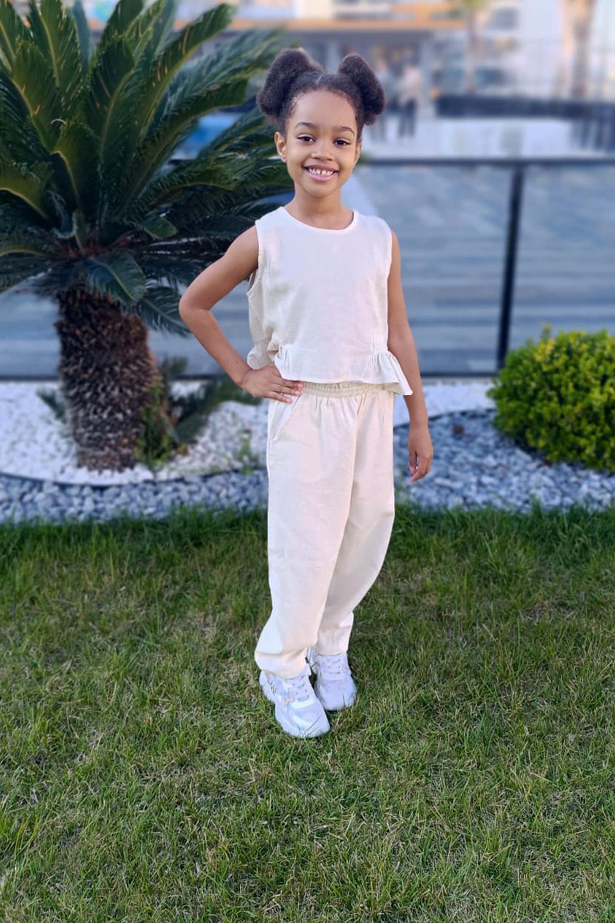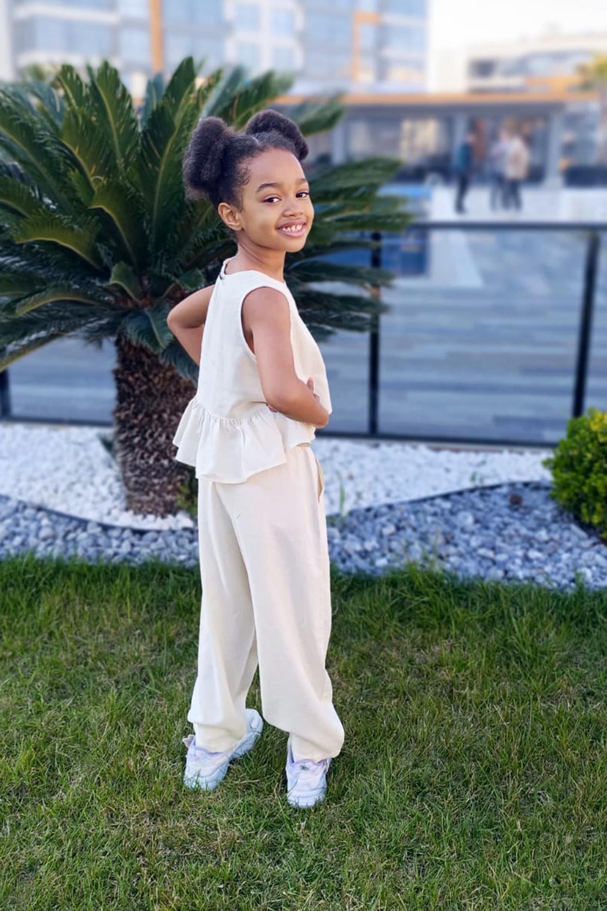 Imola Bej Keten Kız Çocuk Bluz Pantolon 2'li Takım