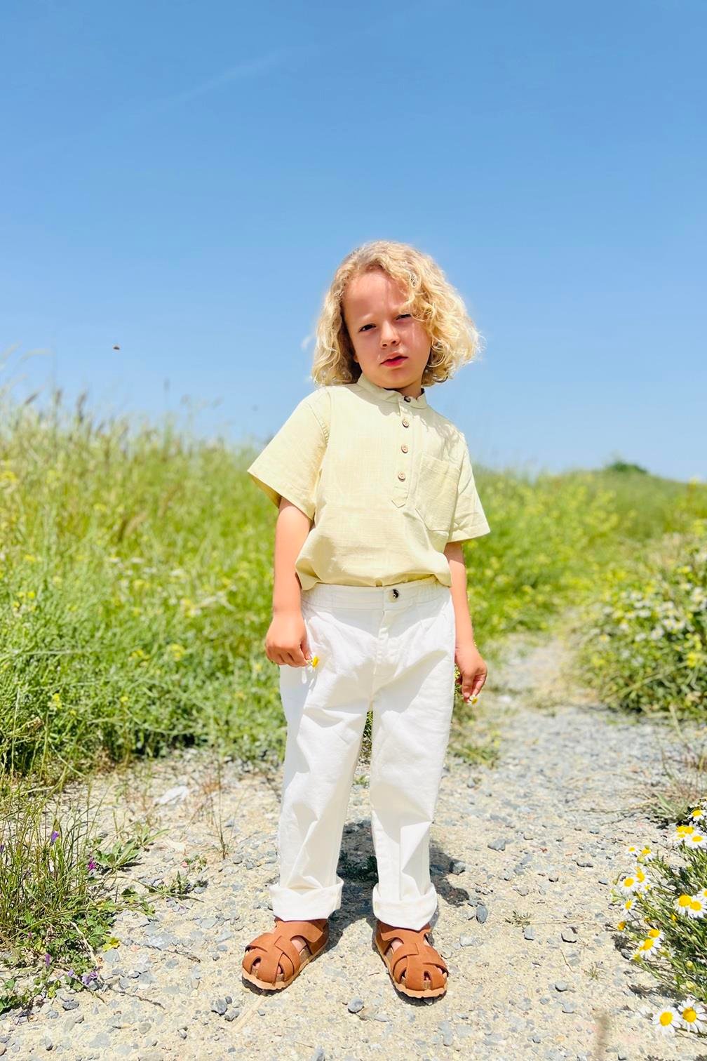 Nacho gömlek, çakıl (taş rengi) tonuyla bohem bir şıklık sunar. %100 BCI sertifikalı pamuk kumaştan üretilmiş olup, çevre dostu özellikleri ve çocukların cildine nazik yapısıyla öne çıkar. Yaz günlerinde serin tutma özelliği sayesinde her türlü etkinlik için ideal bir seçimdir.